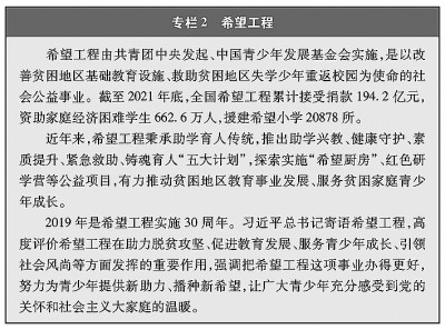 教育機會更加均等。中國教育事業(yè)優(yōu)先發(fā)展不斷深化,中國青年享有更加平等、更高質(zhì)量的教育機會。2021年,中國義務教育鞏固率達95.4%;高中階段毛入學率達91.4%;高等教育毛入學率達57.8%、在學總規(guī)模達4430萬人,居世界第一,越來越多的青年打開了通往成功成才大門的重要路徑。覆蓋學前教育至研究生教育的學生資助政策體系建成且日趨完善,2020年資助資金總額超過2400億元、資助學生近1.5億人次,實現(xiàn)“三個全覆蓋”②。義務教育階段進城務工人員隨遷子女、農(nóng)村和貧困地區(qū)學生等群體受教育權(quán)益得到充分保障。2020年,85.8%的進城務工人員隨遷子女在公辦學校就讀或享受政府購買學位服務;2012年至2021年,農(nóng)村和貧困地區(qū)重點高校專項招生計劃定向招生超過82萬人,讓更多的青年公平享有接受更好教育的機會,阻斷貧困的代際傳遞。
