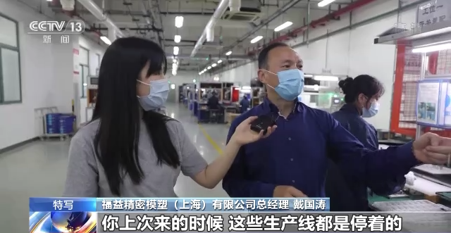 福益精密模塑(上海)有限公司總經(jīng)理 戴國濤:你上次來的時候這些生產(chǎn)線都是停著的,今天我們都已經(jīng)正常生產(chǎn)了。直到目前,我們是24小時開工在加足馬力,所有的情況都在往好的方向轉。