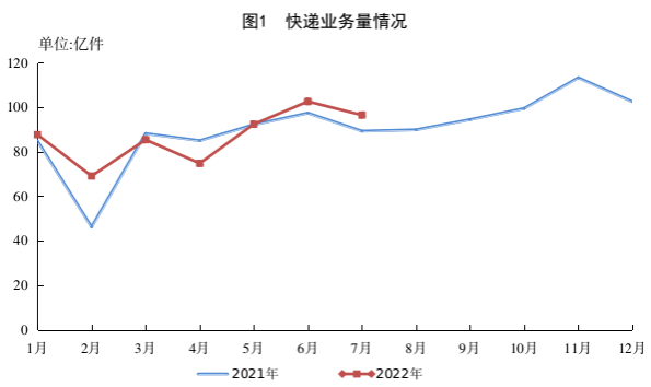 7月份,全國快遞服務(wù)企業(yè)業(yè)務(wù)量完成96.5億件,同比增長8.0%;業(yè)務(wù)收入完成898.2億元,同比增長8.6%。