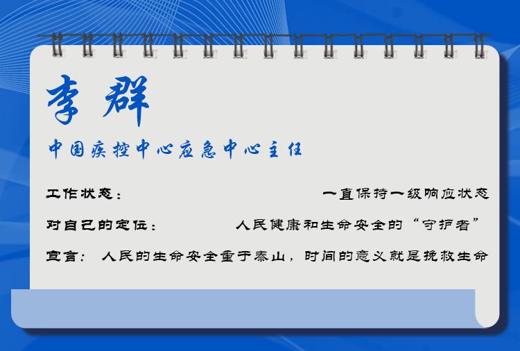 2019年12月31日一早,李群隨中國疾控中心工作組趕赴武漢,同時作為國家衛(wèi)生健康委專家組成員參加工作。他參加制定了《武漢不明原因的病毒性肺炎密切接觸者管理方案》和《應(yīng)急監(jiān)測方案》。他提出的對密接人員進(jìn)行14天醫(yī)學(xué)觀察,此后成為密接人員管理的通用做法。