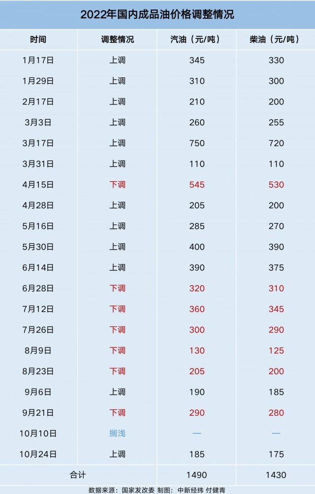 中新經(jīng)緯梳理,今年以來,國內(nèi)成品油價格已經(jīng)進(jìn)行了20輪調(diào)整,呈現(xiàn)“十二漲七跌一擱淺”格局,汽油價格累計上調(diào)1490元/噸,柴油價格累計上調(diào)1430元/噸。