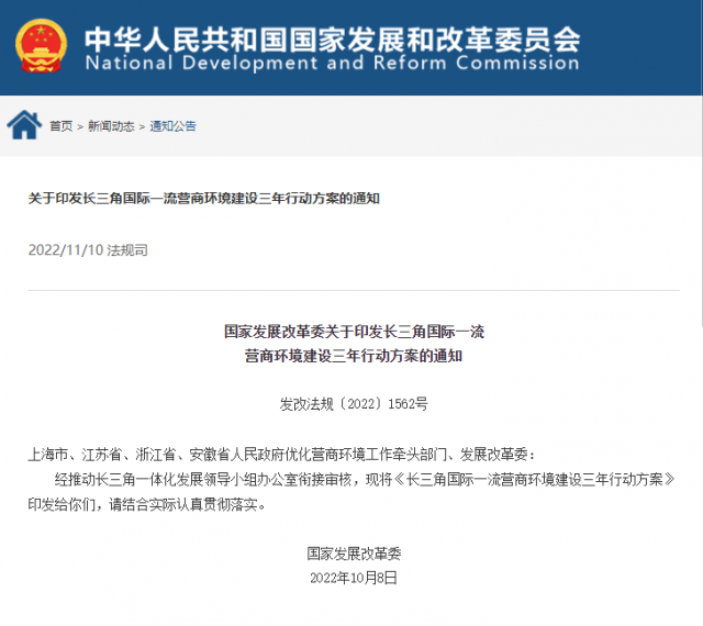 國(guó)家發(fā)展改革委指出,長(zhǎng)三角一體化發(fā)展戰(zhàn)略實(shí)施以來,長(zhǎng)三角地區(qū)優(yōu)化營(yíng)商環(huán)境成效明顯,參與國(guó)際競(jìng)爭(zhēng)合作新優(yōu)勢(shì)不斷增強(qiáng),但長(zhǎng)三角地區(qū)營(yíng)商環(huán)境建設(shè)還存在不少短板弱項(xiàng),重點(diǎn)領(lǐng)域關(guān)鍵環(huán)節(jié)改革任務(wù)仍然艱巨,達(dá)到國(guó)際一流水平仍需加力。