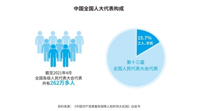 中國從本國國情實際出發(fā),不斷發(fā)展全過程人民民主,完善人民當家作主制度體系,建立了人民代表大會制度、中國共產(chǎn)黨領(lǐng)導的多黨合作和政治協(xié)商制度、民族區(qū)域自治制度和基層群眾自治制度,為人民享有更加廣泛、更加充分、更加全面的民主權(quán)利奠定了堅實的制度基礎(chǔ)。