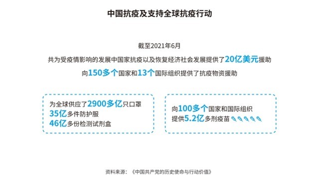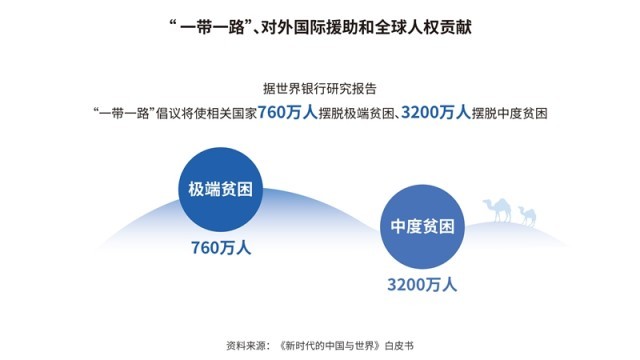 中國先后批準或加入了30余項國際人權(quán)文書,其中包括6項聯(lián)合國核心人權(quán)條約;累計共向166個國家和國際組織提供了援助,派遣60多萬名援助人員;多次無條件免除重債窮國和最不發(fā)達國家對華到期政府無息貸款債務(wù)。在聯(lián)合國維和行動中,中國是安理會常任理事國第一大出兵國,30多年來累計派出維和官兵5萬余人次。共建“一帶一路”已成為助力各國發(fā)展、深受世界歡迎的新興國際公共產(chǎn)品,據(jù)世界銀行研究報告,到2030年,將使相關(guān)國家760萬人擺脫極端貧困、3200萬人擺脫中度貧困。新冠肺炎疫情暴發(fā)以來,中國努力促進新冠疫苗在全球范圍內(nèi)公平合理分配,成為全球?qū)ν馓峁┮呙鐢?shù)量最多的國家。