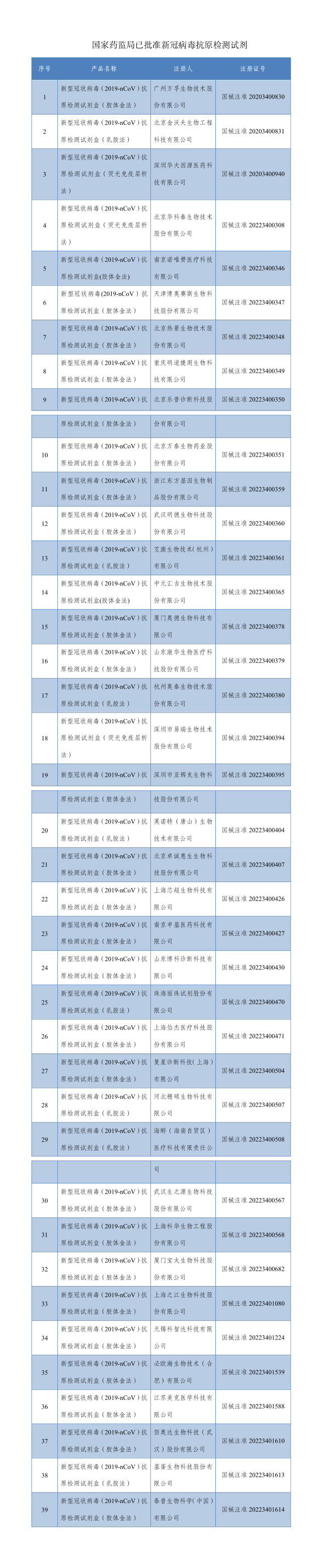 名單公布!39個新冠病毒抗原檢測試劑已獲批