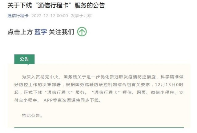 12月13日0時(shí)起,“通信行程卡”服務(wù)將正式下線(xiàn)