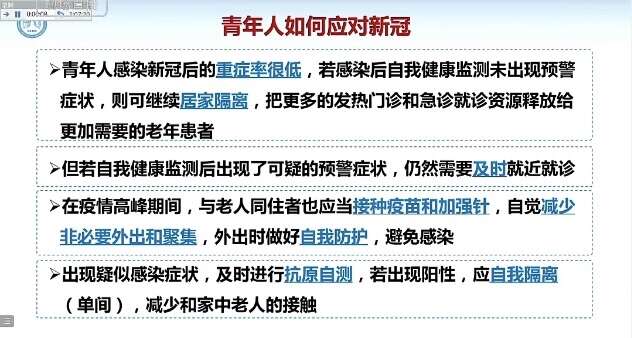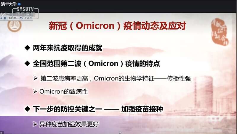 本次講座是“全國高校抗疫大講堂”的一次活動,由中山大學(xué)、北京大學(xué)、清華大學(xué)共同主辦。鐘南山系統(tǒng)分析了全國范圍第二波奧密克戎疫情的特點,介紹了奧密克戎的生物學(xué)特征、致病性,以及在大學(xué)教學(xué)環(huán)境中如何讓學(xué)生加強個人防護,青年人如何應(yīng)對新冠,加強個人防護的8條建議等。