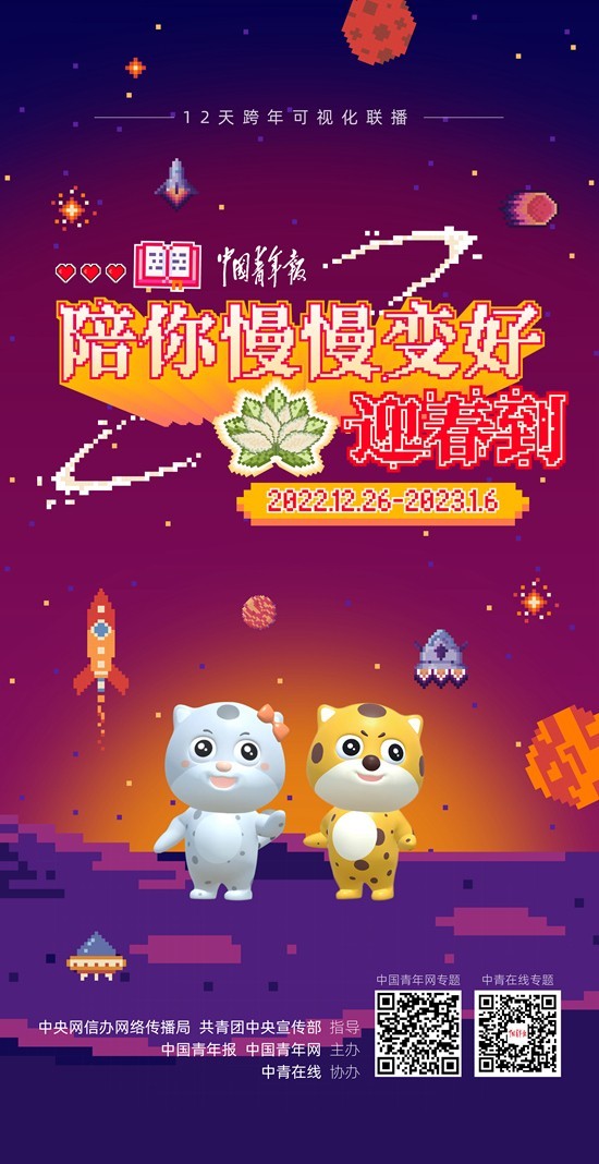 本次可視化聯(lián)播活動(dòng)由中央網(wǎng)信辦網(wǎng)絡(luò)傳播局、共青團(tuán)中央宣傳部指導(dǎo),《中國(guó)青年報(bào)》、中國(guó)青年網(wǎng)主辦,中青在線協(xié)辦。連續(xù)12天的跨年聯(lián)播、直播,以及與之相呼應(yīng)的傳統(tǒng)紙媒形態(tài)的圖文報(bào)道、評(píng)論,新媒體形態(tài)的H5、MV、小程序,新文化業(yè)態(tài)的“青春元宇宙”融合傳播,旨在記錄不同行業(yè)年輕人的故事,關(guān)照和關(guān)愛當(dāng)下年輕人在抗疫、就業(yè)等壓力下的身心健康和成長(zhǎng)成才,倡導(dǎo)青春上善好活法,同時(shí)探索云端思政課堂新模式,用“真”字做好黨的二十大精神的青年化闡釋。
