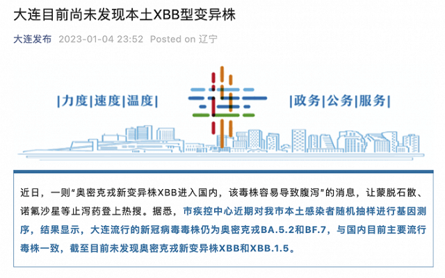 遼寧大連:目前尚未發(fā)現(xiàn)本土XBB型變異株