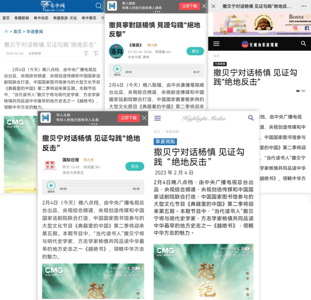 未播先熱!這部當代人幾乎聞所未聞的千古“奇書”,一下子吸引了海內外網(wǎng)民目光。海內外諸多媒體迅速關注,紛紛報道。截至目前,歐洲華語廣播電臺、匈牙利聯(lián)合報、北歐時報等數(shù)十家海外媒體對第二季內容的轉發(fā)和報道,已輻射10多個國家和地區(qū),在海外再次掀起“典籍熱”。