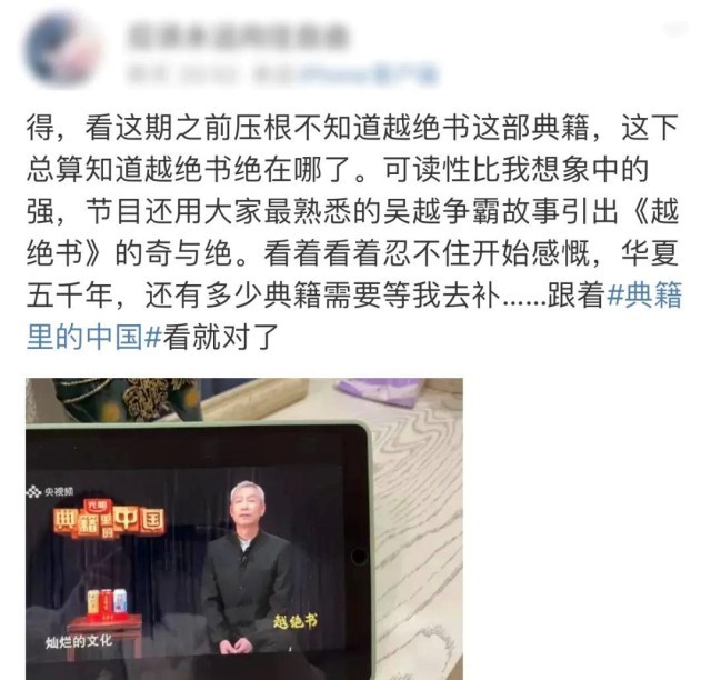 大學時讀的這部書,令總臺臺長記憶深刻。在提議策劃推出《典籍里的中國》第二季時,臺長建議關注《越絕書》這個選題。古越人絕地求生、奮斗不息的精神,值得今人傳承弘揚!