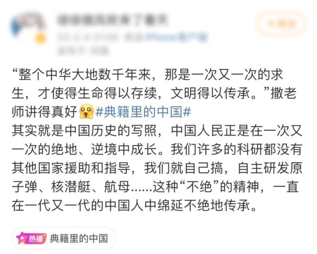 節(jié)目成功傳遞了杰出典籍蘊含的精神內核和文化靈魂,激發(fā)了觀眾內心對中華民族優(yōu)秀傳統(tǒng)文化的認同。