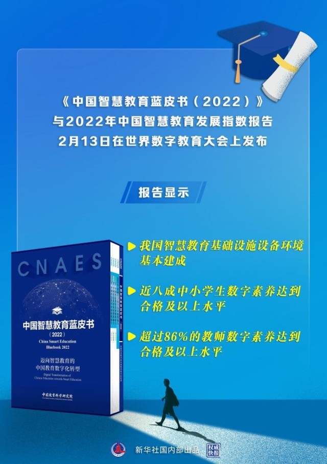 2月13日,在教育部與中國聯(lián)合國教科文組織全國委員會舉辦的世界數(shù)字教育大會上,《中國智慧教育藍皮書(2022)》與2022年中國智慧教育發(fā)展指數(shù)報告發(fā)布。