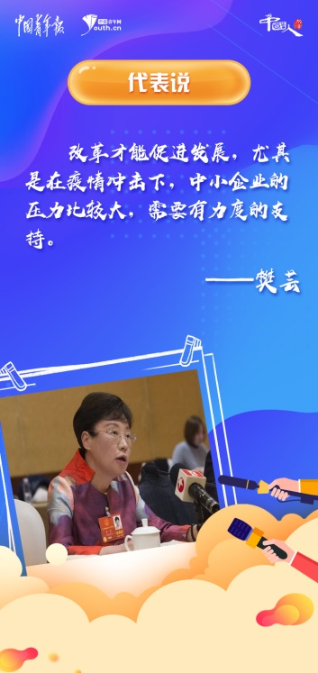今年全國兩會,樊蕓關注恢復經濟增長和提升市場活力方面,“改革才能促進發(fā)展,尤其是在疫情沖擊下,中小企業(yè)的壓力比較大,需要有力度的支持”。