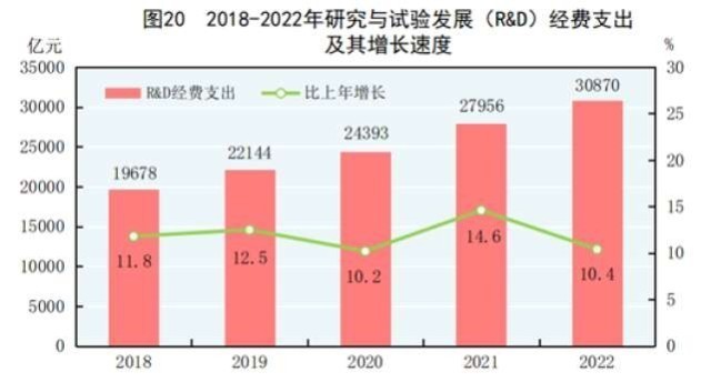 中國網(wǎng)財經(jīng)2月28日訊 國家統(tǒng)計局28日發(fā)布的2022年國民經(jīng)濟(jì)和社會發(fā)展統(tǒng)計公報顯示,2022年,全年研究與試驗發(fā)展(R&D)經(jīng)費支出30870億元,比上年增長10.4%,與國內(nèi)生產(chǎn)總值之比為2.55%,其中基礎(chǔ)研究經(jīng)費1951億元。國家自然科學(xué)基金共資助5.19萬個項目。截至年末,正在運行的國家重點實驗室533個,納入新序列管理的國家工程研究中心191個,國家企業(yè)技術(shù)中心1601家,大眾創(chuàng)業(yè)萬眾創(chuàng)新示范基地212家。國家科技成果轉(zhuǎn)化引導(dǎo)基金累計設(shè)立36支子基金,資金總規(guī)模624億元。國家級科技企業(yè)孵化器1425家,國家備案眾創(chuàng)空間2441家。