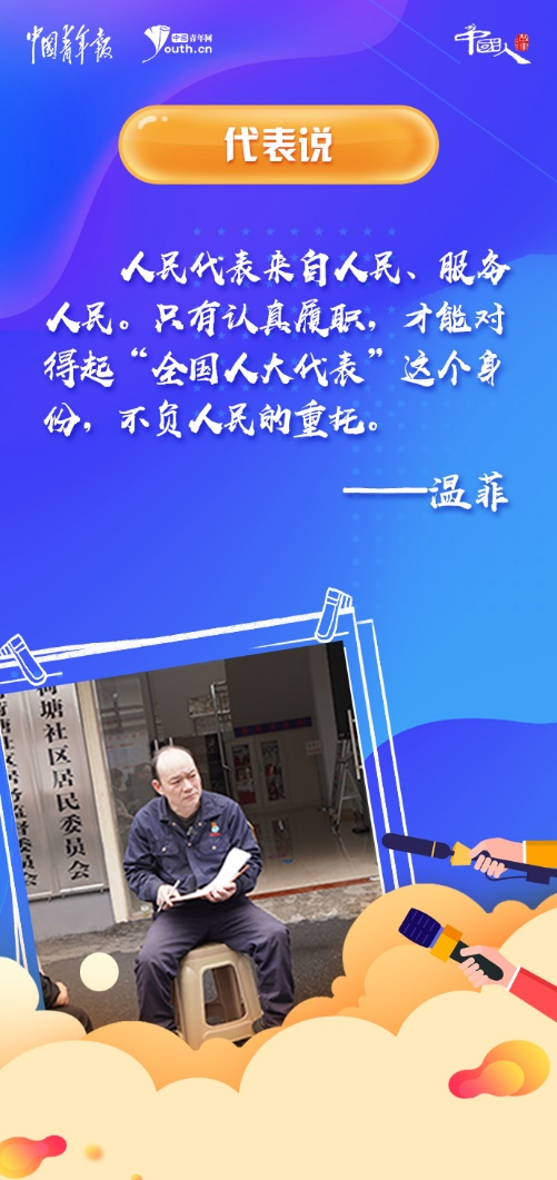 “人民代表來(lái)自人民、服務(wù)人民?!睖胤票硎?,只有認(rèn)真履職,才能對(duì)得起“全國(guó)人大代表”這個(gè)身份,不負(fù)人民的重托。