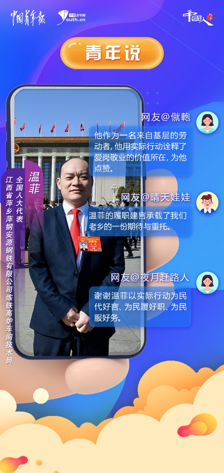 這些年,江西省萍鄉(xiāng)萍鋼安源鋼鐵有限公司煉鐵高爐車間技術(shù)員溫菲的社會(huì)“兼職”漸漸多了:萍鄉(xiāng)市紀(jì)委監(jiān)委特約監(jiān)察員、安源區(qū)法院“法之初”志愿者協(xié)會(huì)榮譽(yù)會(huì)長(zhǎng)……這些都是他身為全國(guó)人大代表履職工作的縮影。