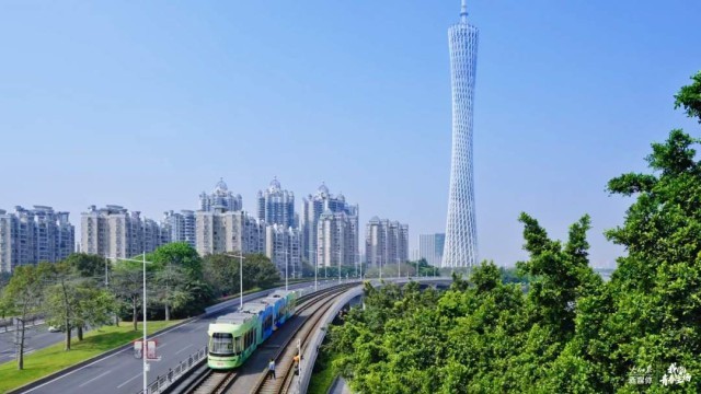 駛過春意盎然的珠江江畔