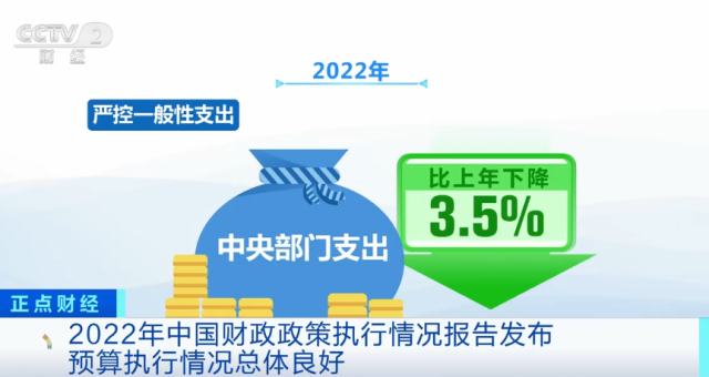 在民眾關心的“三公”經費等方面,2022年,黨政機關堅持過緊日子,提高財政資源配置效率。嚴控一般性支出,中央部門支出比上年下降3.5%。
