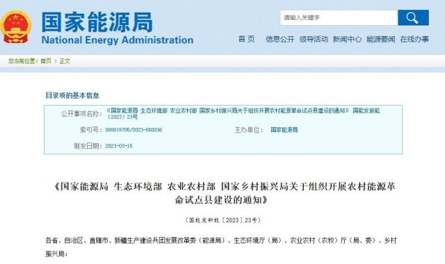 央視網(wǎng)消息:近日,國家能源局、生態(tài)環(huán)境部、農(nóng)業(yè)農(nóng)村部、國家鄉(xiāng)村振興局發(fā)布《關于組織開展農(nóng)村能源革命試點縣建設的通知》。具體如下: