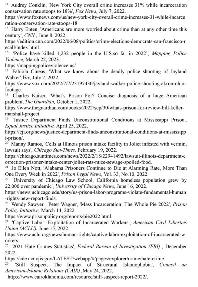 執(zhí)法司法領(lǐng)域種族歧視根深蒂固。聯(lián)合國消除種族歧視委員會(huì)的結(jié)論性報(bào)告指出,美國執(zhí)法人員對有色人種和少數(shù)族裔群體過度使用暴力并逍遙法外的情況仍然普遍存在;有色人種和少數(shù)族裔在美國司法系統(tǒng)中被逮捕、監(jiān)禁和長期虐待的情況突出。(注73)“警察暴力地圖”網(wǎng)站的數(shù)據(jù)顯示,在2013年至2022年的警察殺人事件中,非洲裔被警察殺害的可能性是白人的2.78倍,手無寸鐵的非洲裔被警察殺害的可能性是手無寸鐵的白人的1.3倍。在波士頓、明尼阿波利斯和芝加哥,非洲裔被警察殺害的可能性更是白人的20多倍。(注74)美國國家公共電臺2022年9月27日報(bào)道,國家免責(zé)登記處發(fā)布的報(bào)告指出,非洲裔在美國人口中所占比例不到14%,但在美國被誤判犯有嚴(yán)重罪行并在至少服完部分刑期后獲釋的所有人中,非洲裔占了53%;美國非洲裔因三項(xiàng)重大罪行被錯(cuò)誤定罪的可能性是白人的7倍,非洲裔因毒品犯罪被錯(cuò)誤定罪的可能性是其他人的19倍。(注75)美國國家學(xué)院出版的《美國監(jiān)禁的增長:探索原因和后果》一書指出,滲透著種族主義的刑事司法系統(tǒng)“正日益成為一個(gè)更大的污名化和長期邊緣化系統(tǒng)的主要通道”。(注76)