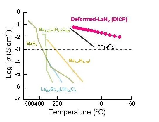 氫負離子具有強還原性、高電壓等特征,氫負離子導體在充電電池、燃料電池等領(lǐng)域具有廣闊的應(yīng)用前景,是潔凈能源領(lǐng)域的前沿課題。中國科學院大連化學物理研究所陳萍研究員、曹湖軍副研究員團隊提出了一種全新材料設(shè)計研發(fā)策略,通過機械球磨法,在稀土氫化物——氫化鑭晶格中,創(chuàng)造了大量的納米微晶和晶格缺陷,造成氫化鑭晶格的畸變,從而顯著抑制了電子的傳導,實現(xiàn)了純氫負離子的快速傳導。此前,氫負離子導體只能在300攝氏度左右實現(xiàn)超快傳導,而這項研究實現(xiàn)了在零下40攝氏度到80攝氏度范圍內(nèi)的超快傳導,為氫負離子導體的研發(fā)開辟出一條新的道路。
