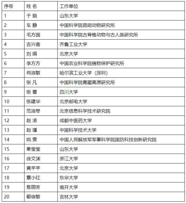 第十八屆中國(guó)青年女科學(xué)家獎(jiǎng)揭曉 20人5支團(tuán)隊(duì)獲獎(jiǎng)