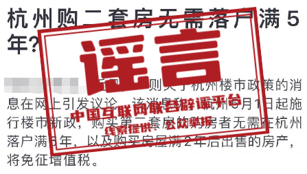 謠言:杭州購(gòu)二套房無需落戶滿5年?