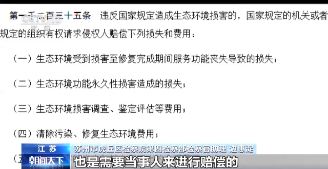 蘇州市虎丘區(qū)檢察院第四檢察部檢察官助理 邊惠淀:因?yàn)樯志哂泻B(yǎng)水源、保持水土、固碳釋氧等多方面的生態(tài)功能,我們委托上海環(huán)境科學(xué)研究院的專家對(duì)這部分的生態(tài)損失進(jìn)行了鑒定,這部分的損失總共是14萬(wàn)余元。