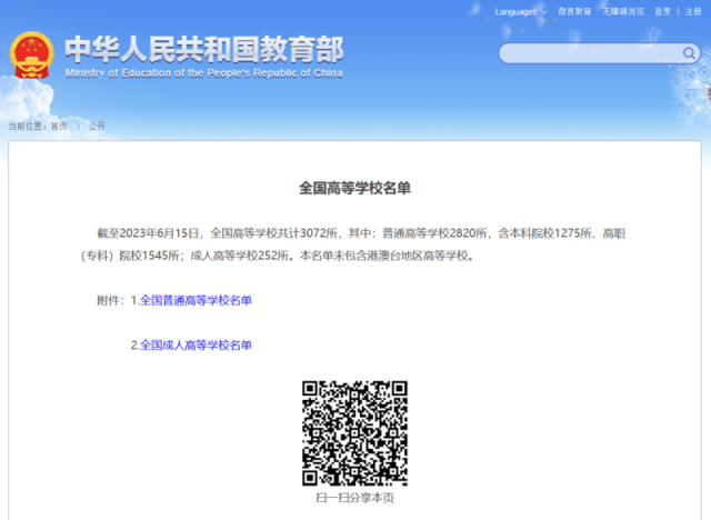 3072所!教育部發(fā)布全國高等學(xué)校名單