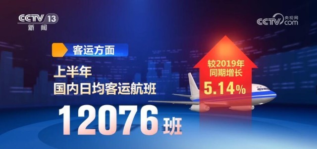 客運(yùn)方面,上半年國(guó)內(nèi)日均客運(yùn)航班12076班,較2019年同期增長(zhǎng)5.14%;國(guó)內(nèi)日均旅客運(yùn)輸量152.2萬(wàn)人次,恢復(fù)至2019年同期的96.5%。貨運(yùn)方面,上半年日均保障貨運(yùn)航班590班,較2019年同期增長(zhǎng)58.2%。