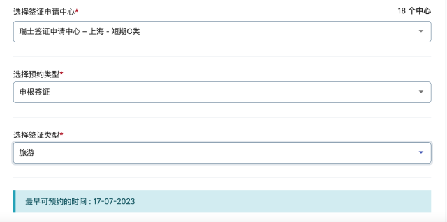 也有多個歐洲國家仍能預約暑期送簽。如上海瑞士簽證申請中心能直接預約到隔天送簽。