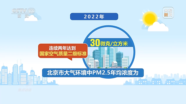 黨的十八大以來,北京市堅決打好污染防治攻堅戰(zhàn),大力壓減燃煤、治理機動車排放、揮發(fā)性有機物以及各類揚塵污染,實施“一微克”行動,治理成效顯著,藍天越來越多。監(jiān)測結果顯示,2022年,北京市大氣環(huán)境中PM2.5年均濃度為每立方米30微克,比2013年下降了66.5%,連續(xù)兩年達到國家空氣質量二級標準。重污染天數(shù)由2013年的58天減少到2022年的3天,“北京藍”成為常態(tài)。