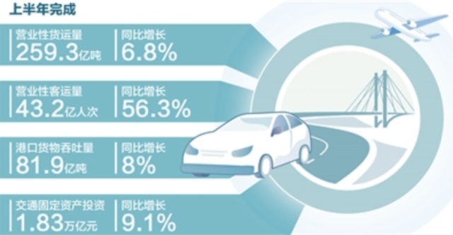 完成營(yíng)業(yè)性貨運(yùn)量259.3億噸,同比增長(zhǎng)6.8%;完成交通固定資產(chǎn)投資1.83萬億元,繼續(xù)保持高位運(yùn)行……7月31日,交通運(yùn)輸部發(fā)布數(shù)據(jù)顯示,上半年,交通運(yùn)輸經(jīng)濟(jì)運(yùn)行穩(wěn)中向好,既有量的合理增長(zhǎng),也有質(zhì)的有效提升。