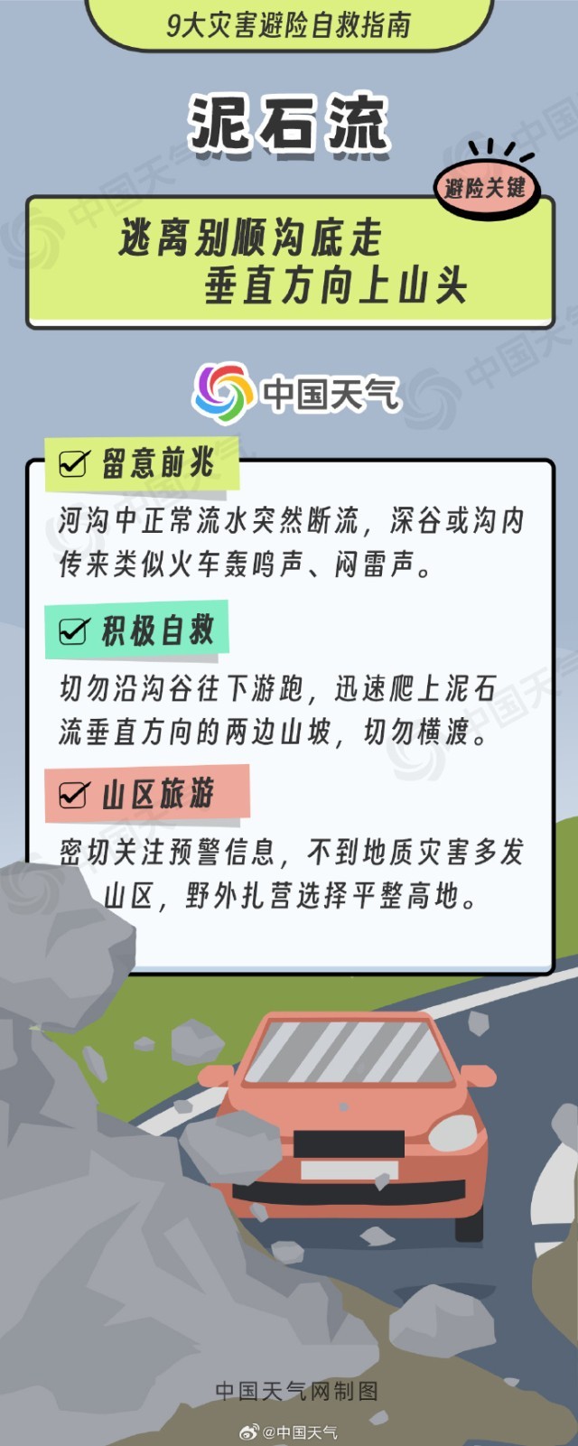 雨后山區(qū)道路沿線易發(fā)生落石,大家請避免在陡峭石壁或凸石下停留,當(dāng)災(zāi)害發(fā)生時(shí)要迅速向崩塌體兩側(cè)逃生;房前屋后土體突然鼓脹,局部出現(xiàn)滑塌或裂縫,并有水流滲出時(shí),要警惕滑坡災(zāi)害,快速向滑動(dòng)方向兩側(cè)逃離;地面出現(xiàn)環(huán)狀裂縫,地形下凹或地表水快速滲漏,建筑物出現(xiàn)傾斜開裂時(shí),要迅速遠(yuǎn)離沉陷地帶。