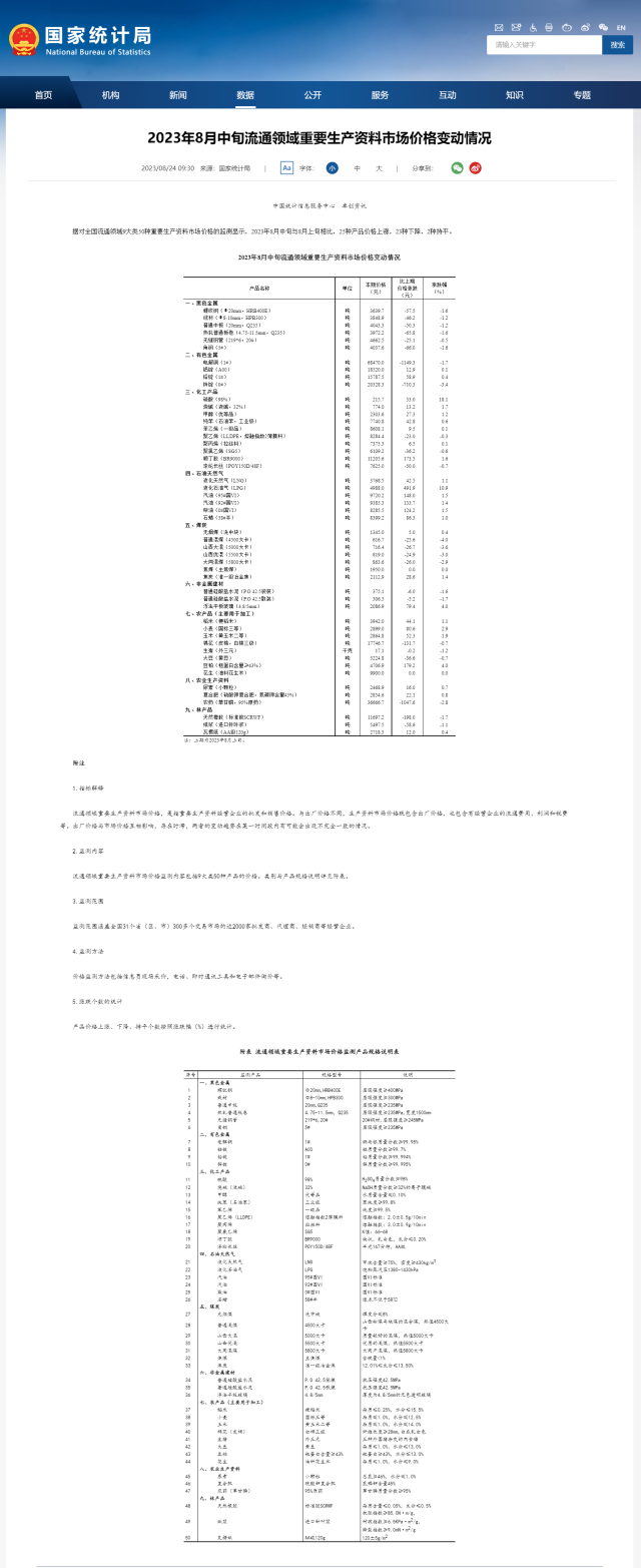 國(guó)家統(tǒng)計(jì)局:8月中旬生豬(外三元)價(jià)格環(huán)比下降1.2%