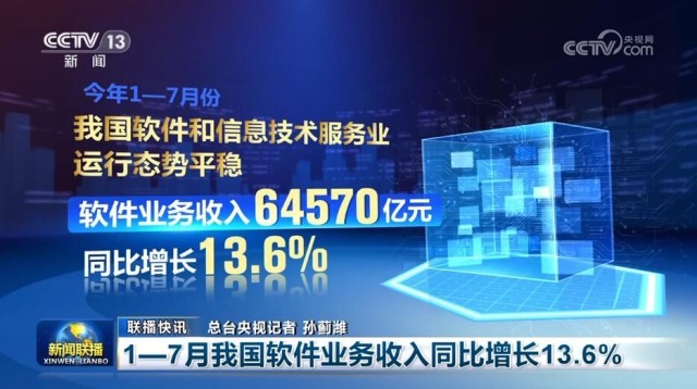 1—7月我國(guó)軟件業(yè)務(wù)收入同比增長(zhǎng)13.6%