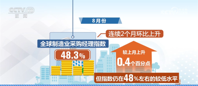 8月份全球制造業(yè)采購經(jīng)理指數(shù)為48.3%,較上月上升0.4個百分點(diǎn),連續(xù)2個月環(huán)比上升,但指數(shù)仍在48%左右的較低水平,全球經(jīng)濟(jì)呈弱勢修復(fù)態(tài)勢,總體趨緊的大環(huán)境沒有改變,需求收縮壓力仍然存在。