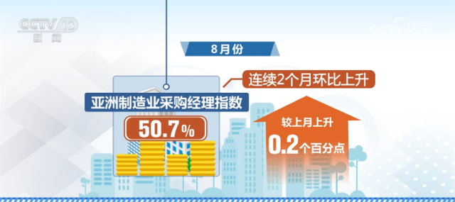 8月份,亞洲制造業(yè)采購經(jīng)理指數(shù)為50.7%,較上月上升0.2個百分點(diǎn),連續(xù)2個月環(huán)比上升,顯示亞洲制造業(yè)延續(xù)平穩(wěn)增長趨勢。從主要國家看,中國制造業(yè)采購經(jīng)理指數(shù)連續(xù)三個月上升,向好回升勢頭進(jìn)一步鞏固,中國制造業(yè)呈現(xiàn)持續(xù)穩(wěn)定恢復(fù)趨勢,為亞洲制造業(yè)的平穩(wěn)增長提供重要支撐。