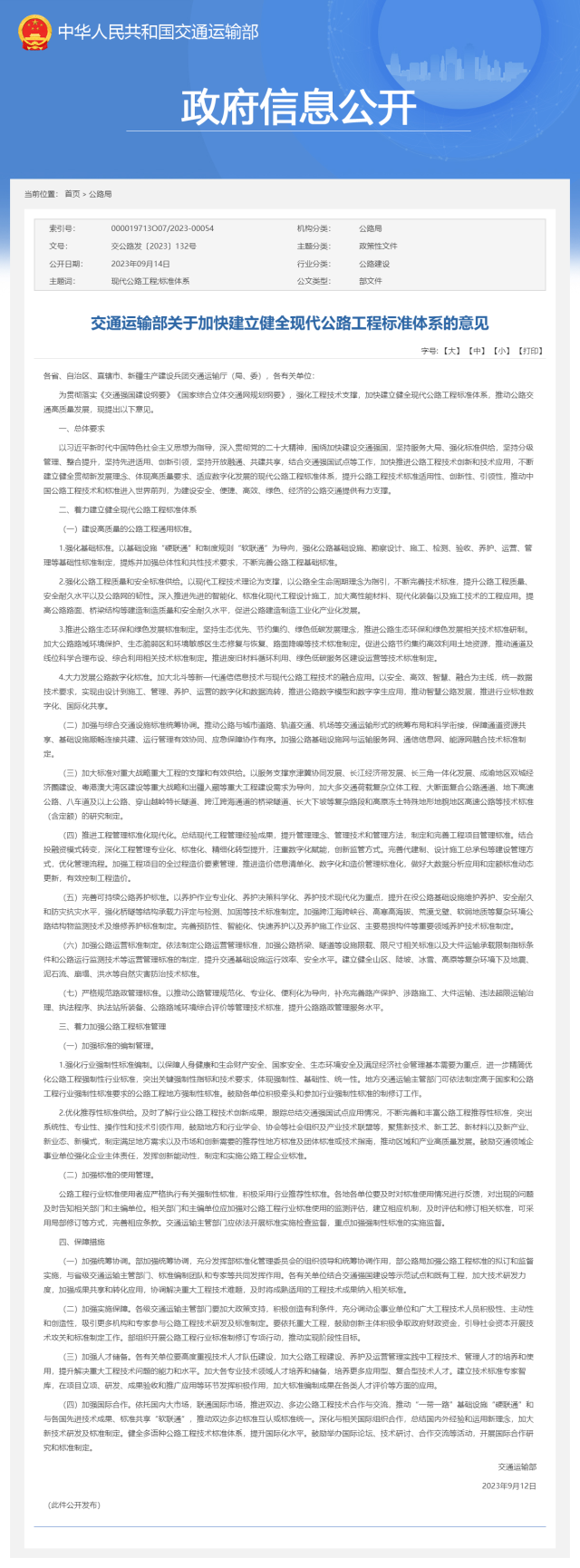 央視網(wǎng)消息:交通運(yùn)輸部發(fā)布關(guān)于加快建立健全現(xiàn)代公路工程標(biāo)準(zhǔn)體系的意見。其中提出,大力發(fā)展公路數(shù)字化標(biāo)準(zhǔn)。加大北斗等新一代通信信息技術(shù)與現(xiàn)代公路工程技術(shù)的融合應(yīng)用。以安全、高效、智慧、融合為主線,統(tǒng)一數(shù)據(jù)技術(shù)要求,實(shí)現(xiàn)由設(shè)計(jì)到施工、管理、養(yǎng)護(hù)、運(yùn)營的數(shù)字化和數(shù)據(jù)流轉(zhuǎn),推進(jìn)公路數(shù)字模型和數(shù)字孿生應(yīng)用,推動(dòng)智慧公路發(fā)展,推進(jìn)行業(yè)標(biāo)準(zhǔn)數(shù)字化、國際化共享。