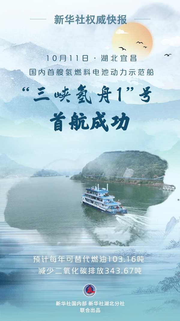 氫燃料電池動力示范船“三峽氫舟1”號10月11日上午在湖北宜昌三峽游客中心(九碼頭)完成首航,這標志著氫燃料電池技術(shù)在內(nèi)河船舶應用實現(xiàn)零的突破。據(jù)測算,“三峽氫舟1”號相比傳統(tǒng)燃油動力船舶,預計每年可替代燃油103.16噸,減少二氧化碳排放343.67噸。