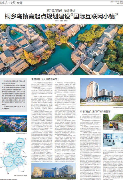 11月1日,《浙江日報》整版刊發(fā)《迎“風”而起 加速前進桐鄉(xiāng)烏鎮(zhèn)高起點規(guī)劃建設“國際互聯(lián)網小鎮(zhèn)”》,全文如下:
