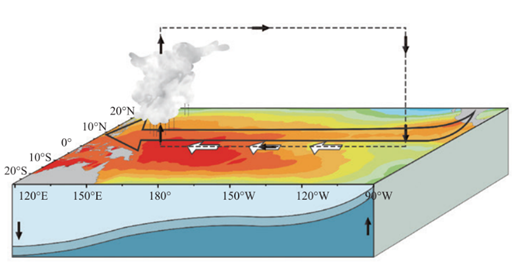 正常情況下,赤道西太平洋是大片的暖水區(qū),其面積相當(dāng)于我國陸地面積的兩倍多,而東太平洋是一片冷水區(qū)。但在一些年份,原本堆積在西太平洋的暖海水會往東蔓延,使得赤道中東太平洋海溫持續(xù)異常升高;而另一些年份,赤道中東太平洋冷水區(qū)范圍擴大,海水變得更冷。當(dāng)赤道中東太平洋海溫出現(xiàn)這種異常現(xiàn)象,就有可能發(fā)生厄爾尼諾或拉尼娜。