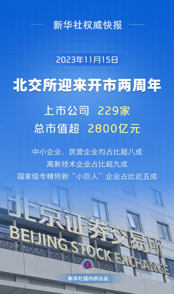 2023年11月15日,北京證券交易所迎來開市兩周年。