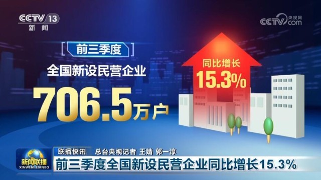 另外,市場監(jiān)管總局今天公布數(shù)據(jù)顯示,前三季度,全國新設(shè)民營企業(yè)706.5萬戶,同比增長15.3%。截至今年9月底,全國登記在冊民營企業(yè)數(shù)量超過5200萬戶,民營企業(yè)在企業(yè)總量中的占比達(dá)到92.3%。