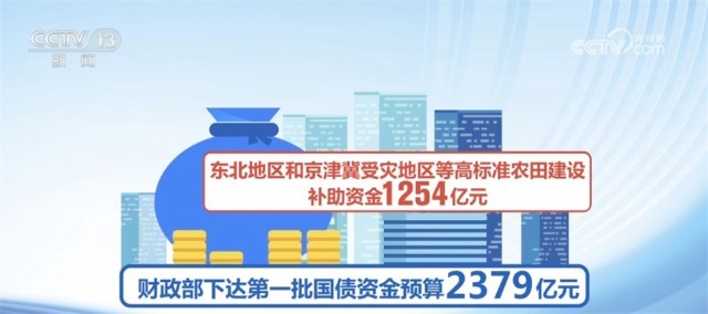據(jù)介紹,根據(jù)工作機(jī)制確定的第一批2900多個項(xiàng)目,財政部已經(jīng)下達(dá)第一批國債資金預(yù)算2379億元,其中,災(zāi)后恢復(fù)重建和提升防災(zāi)減災(zāi)能力補(bǔ)助資金1075億元、東北地區(qū)和京津冀受災(zāi)地區(qū)等高標(biāo)準(zhǔn)農(nóng)田建設(shè)補(bǔ)助資金1254億元、重點(diǎn)自然災(zāi)害綜合防治體系建設(shè)工程補(bǔ)助資金(氣象基礎(chǔ)設(shè)施項(xiàng)目建設(shè))50億元。