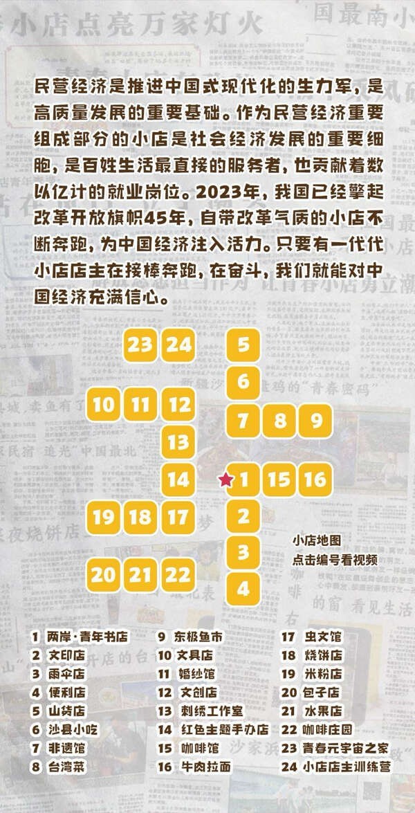2023年是改革開放45周年,自5月起中國青年報(bào)發(fā)起"了不起的青春小店"尋訪調(diào)研,派出采編調(diào)研組奔赴全國各地探訪了60多個(gè)地方的青春小店,與上百家小店的創(chuàng)業(yè)青年深度對(duì)話,了解他們的急難愁盼,呼吁社會(huì)更多地關(guān)注這一群體。