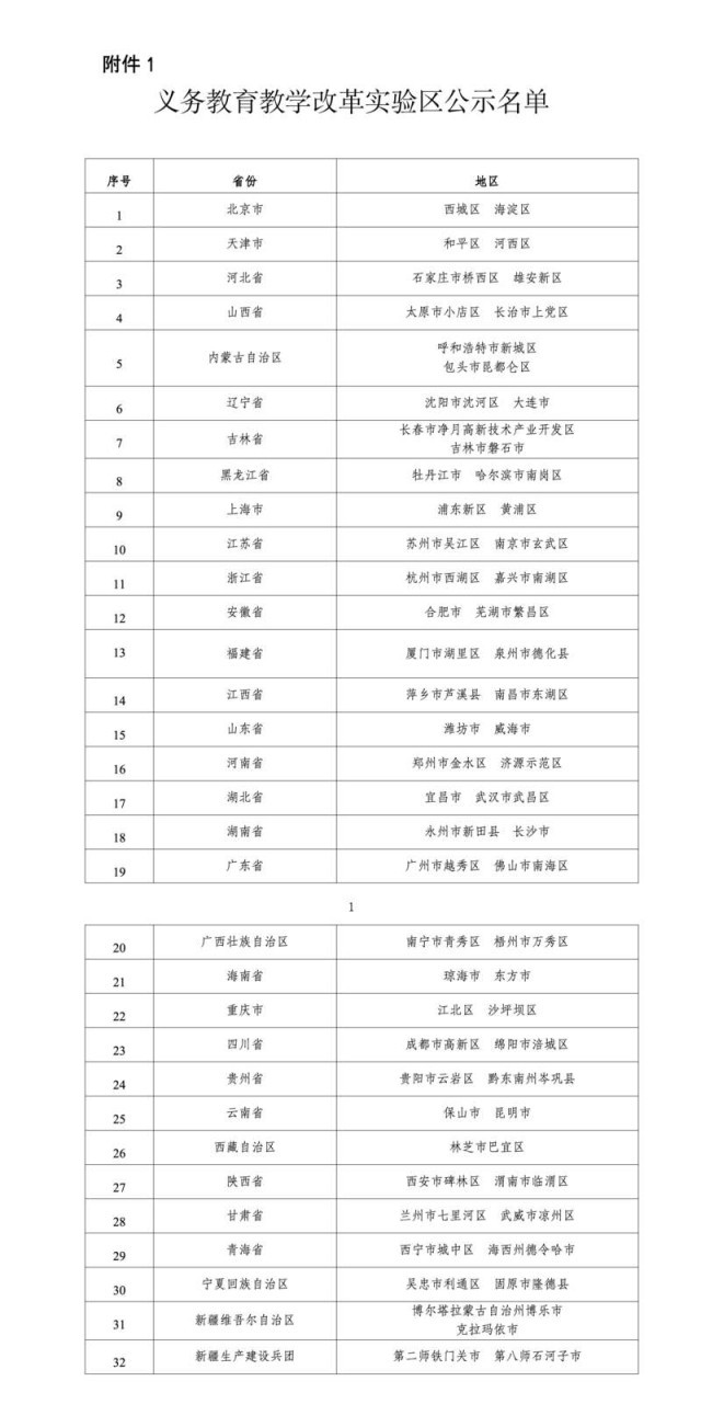 教育部公示義務(wù)教育教學改革63個實驗區(qū)和189個實驗校