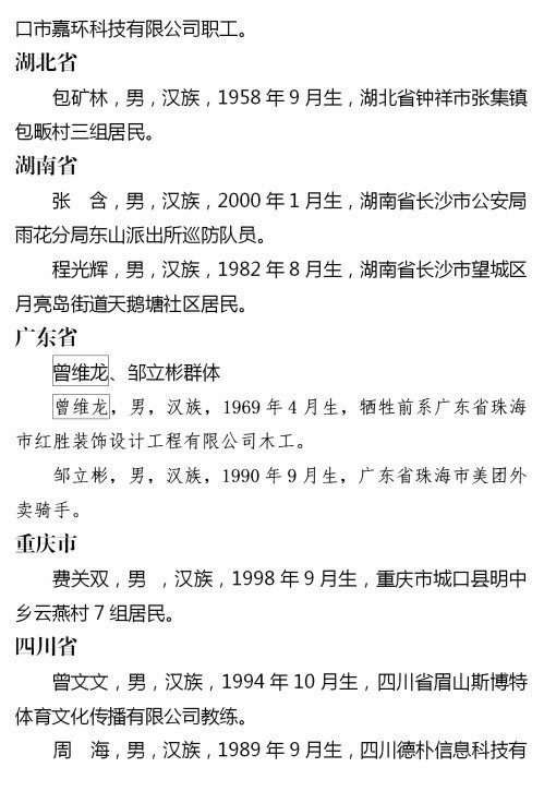 2024年1月4日,中央政法委在京發(fā)布2023年第四季度見義勇為勇士榜,根據(jù)網(wǎng)絡(luò)關(guān)注度和各地各單位選樹、經(jīng)過綜合評(píng)審,共有47位勇士光榮上榜。