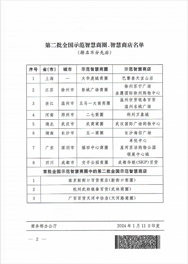 商務(wù)部公布第二批全國示范智慧商圈、智慧商店名單